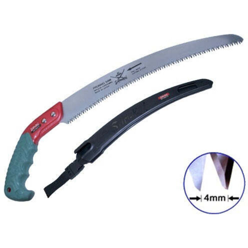 Lama curva, denti rettificati di precisione, passo lama 4 mm. Custodia a fondina