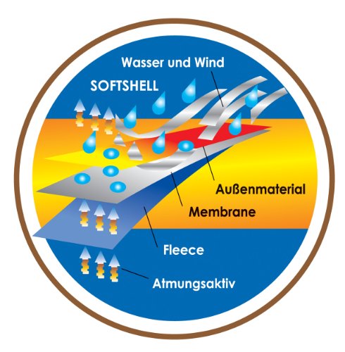 In materiale 3 schichtigem Softshell, impermeabile - 10.000 mm/m2/24h, traspirante. Bilancia - 3.000 G/M2/24h