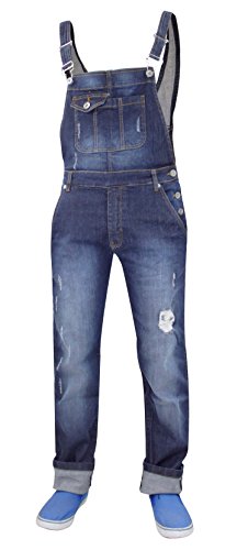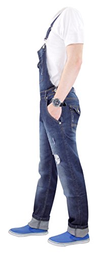 Salopette unisex elasticizzata di jeans stracciati Stone Wash M