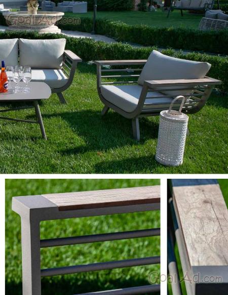 Salotto da giardino in alluminio colore tortora con cuscini colore crema composto da: