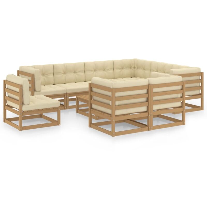 Questo set da giardino in legno di pino è la scelta ideale per rilassarsi e godersi il clima, fare un pisolino o chiacchierare con la famiglia o gli amici. Il set di divani è realizzato in legno massello di pino, che lo rende robusto e stabile. Questo set ha una costruzione solida e richiede poca manutenzione. I cuscini aggiungono ulteriore comfort. Questo set da salotto aggiungerà un tocco di fascino rustico al vostro spazio abitativo all'aperto. Nota: Per prolungare la vita del vostro arredamento da esterno, vi consigliamo di proteggerlo con una copertura impermeabile. Colore divano: Marrone miele Colore cuscini: Crema Materiale: Legno di pino massello, tessuto (100% poliestere) Dimensioni divano ad angolo: 70 x 70 x 67 cm (L x P x A) Dimensioni divano centrale: 70 x 70 x 67 cm (L x P x A) Dimensioni del poggiapiedi: 70 x 70 x 30 cm (L x P x A) Dimensioni cuscino del sedile: 70 x 70 x 8 cm (L x P x S) Dimensioni cuscino schienale: 70 x 40 x 8 cm (L x P x S) Assemblaggio richiesto