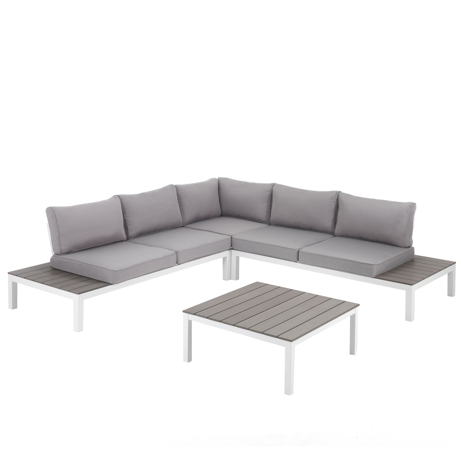 Il salotto Lilja è l'elemento che stavi cercando per completare la decorazione del tuo giardino. È realizzato da OresteLuchetta, brand del gruppo Tomasucci che garantisce qualità ed innovazione. Questo modello trasferisce all'esterno il comfort del tuo salotto, combinando una resistente struttura in alluminio e legno con finitura rovere con i morbidi cuscini rivestiti in poliestere di colore grigio, per una morbidezza ed un comfort extra. Include un 1 bellissimo divano angolare: H.76 x L.247 x P.247 cm, portata massima 200 kg ed un grazioso tavolino da tè: H.35 x L.80 x P.80 cm.