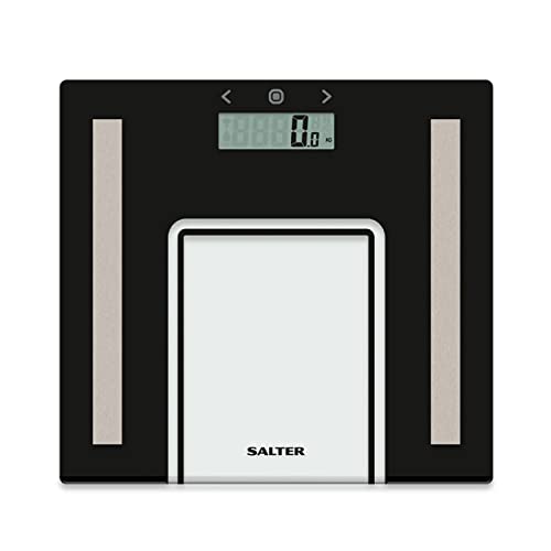 Salter 9198AR SV3R, La Bilancia digitale persone, 8 Utenti, Bilancia Peso e Massa Grassa e Bmi, display LCD di Facile Lettura, Vetro Temprato Sottile, Batterie incluse, Argento
