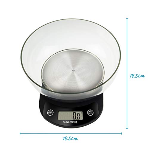 Salter - Bilancia di precisione bilancia elettronica ciotola, Cromo, Nero, 18.5x21.5x14.5 cm