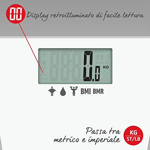 Queste bilance versatili e pratiche misurano peso, grasso corporeo, acqua, massa muscolare, BMI e BMR fornendo un quadro completo della situazione.