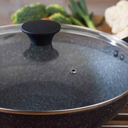 La padella salter megastone è ideale per preparare pasti per tutta la famiglia ed è dotata di un robusto coperchio in vetro temperato con un pratico sfiato per il vapore