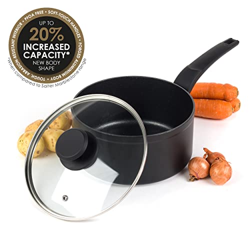 Salter BW08655 Marble Gold 20 Cm Pentola Antiaderente con Coperchio in Vetro Temperato, Minestra in Alluminio Forgiato, Padelle Compatibili con Piano Cottura A Induzione E Lavabile in Lavastoviglie
