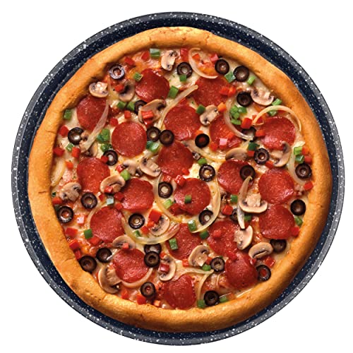 Salter BW10690EU7 Megastone - 29cm teglia per pizza, facile da pulire rivestimento antiaderente, Teglia in acciaio al carbonio con fori per una cottura più veloce, sicura in forno, senza PFOA, nero