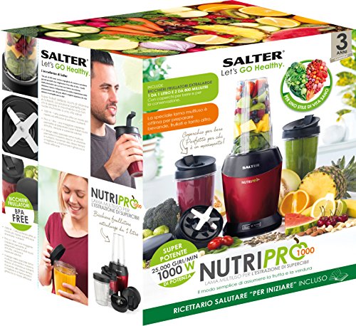 Salter NutriPro Frullatore, Potenza: 1000W, 25.000 Giri al minuto, BPA Free, Include: 1 bottiglia da 1000ml, e 2 da 800ml, Prepara velocemente succhi e frullati ricchi di proprietà nutritive