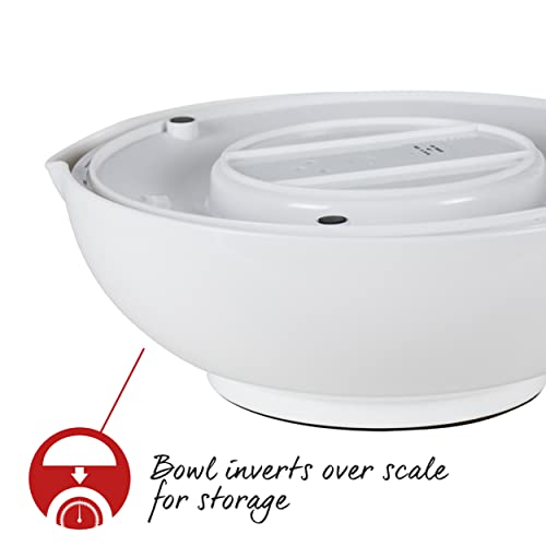CIOTOLA INCLUSO: Questa bilancia da cucina include una ciotola da 2,6 litri che si semplicemente ribalta sulla bilancia per garantire una conservazione risparmio di spazio e senza polvere.