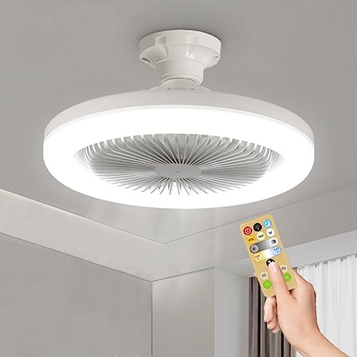 Saluaqui Ventilatore da Soffitto con Luce, 36W Ventilatore da Soffitto con Luce e Telecomando, 9.5" Piccolo E27 LED Ventilatore per Soggiorno Sala da Pranzo Camera da Letto 86-265V Bianco
