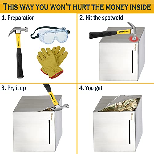 Salvadanaio per adulti, in acciaio inox, sicuro, per adulti, risparmio di denaro reale (5.9 inch)