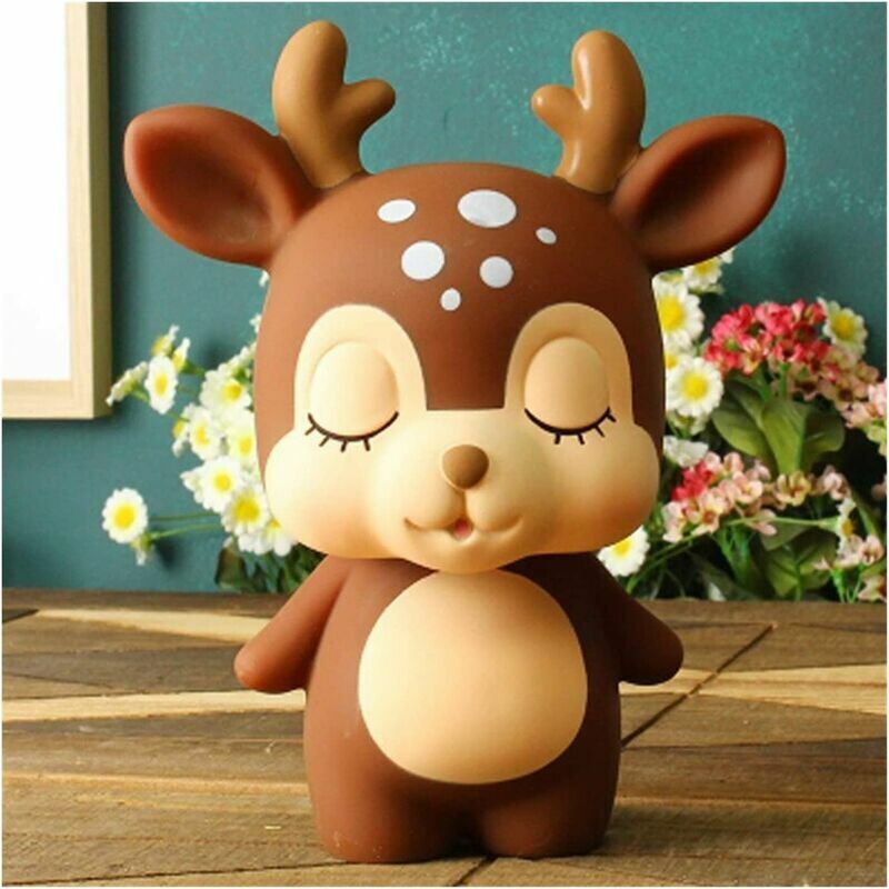 Abbastanza grande da contenere molti risparmi, il vasetto è carino e bello, molto buono. Incoraggia il bambino a risparmiare con questo simpatico salvadanaio! I bambini lo faranno amano mettere i soldi nel loro nuovo amico salvadanaio e vedere crescere i loro risparmi. Materiale in resina resistente di alta qualità, finiture lucide e lucenti. Lattine sigillate del cartone animato e del cervo creativo la forma è molto carina, a forma di cervo carino in resina dell'ornamento creativo per la casa del salvadanaio domestico.