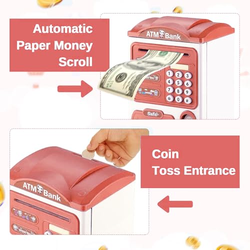 Salvadanaio Elettronico per Bambini, Bambini Cassaforte con Codice Salvadanaio Mini ATM Piggy Bank Monete Banconote Bancomat Cassa di Compleanno per Bambini (Rosa)...