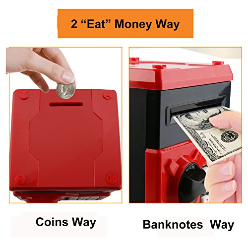 SCATOLA DI DENARO MULTIUSO: Oltre alla funzione fontamentale di depositare i tuoi soldi, questo "salvadanaio elettronico" dispone di un grande spazio per depositare cose come gioielli da giocotolo, carte da baseball o carte da gioco. L'apertura di monete nella parte superiore consente di utilizzare la cassaforte come un salvadanaio.