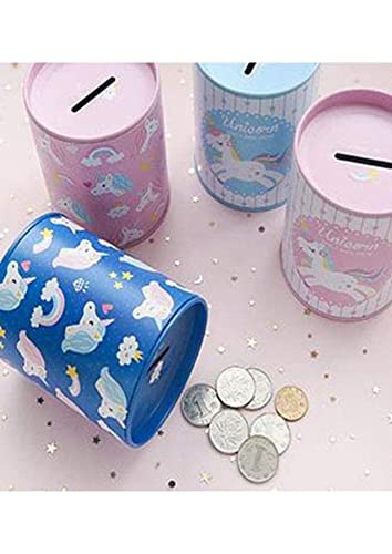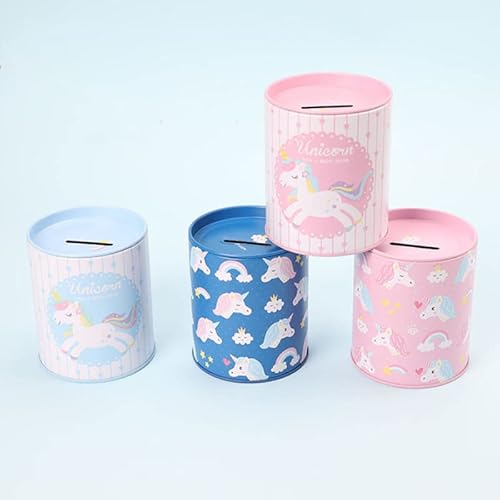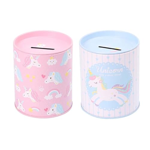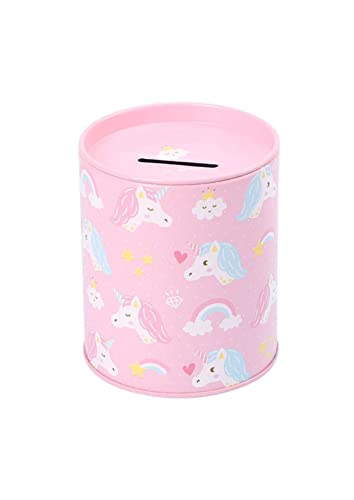 Salvadanaio di latta per bambini. Originale salvadanaio di latta con coperchio. Salvadanaio di latta economico per bambini che può essere utilizzato anche come portamatite (Unicorni Rosa).