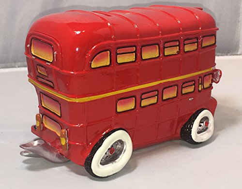 Salvadanaio in poliresina a forma di bus a due piani, colore rosso, 20 x 12 cm
