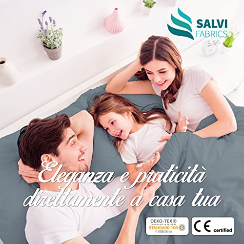 SALVI FABRICS Lenzuola Matrimoniali Set Completo, 100% Cotone, Oeko-Tex, Angoli Elasticizzati. Lenzuolo 240×290 cm, Copri Materasso con Angoli 180×200, Federe 50×80, Biancheria da Letto