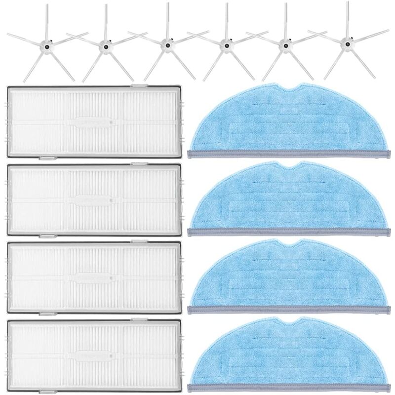 Accessori con parti di ricambio S7 S7+ T7 S7Plus. Contenuto della confezione: 4 filtri HEPA, 4 salviette, 6 spazzole laterali Filtro: il filtro lavabile è realizzato in materiale E11, che può filtrare efficacemente la polvere, purificare l'aria e prevenire l'inquinamento secondario. Salviette: materiale in fibra superfine, forte e durevole, non facile da tirare e danneggiare, elevata permeabilità all'acqua, può facilmente affrontare varie macchie del pavimento, come impronte, residui di linfa e macchie di olio. Salviette: è adatto per pavimenti in legno, pavimenti in marmo, pavimenti compositi, pavimento in ceramica e non danneggerà il pavimento, quindi puoi usarlo senza esitazione. Spazzola laterale: quando pulisci il bordo della spazzatrice, puoi utilizzare una spazzola morbida rotante per rimuovere la polvere da pareti e angoli e aspirarlo nel contenitore della polvere con un aspirapolvere.