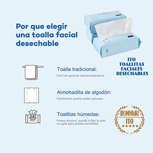ITO - Salviette monouso per il viso, 100% cotone, ideali per pelli sensibili, 3 confezioni da 60 salviette ciascuna