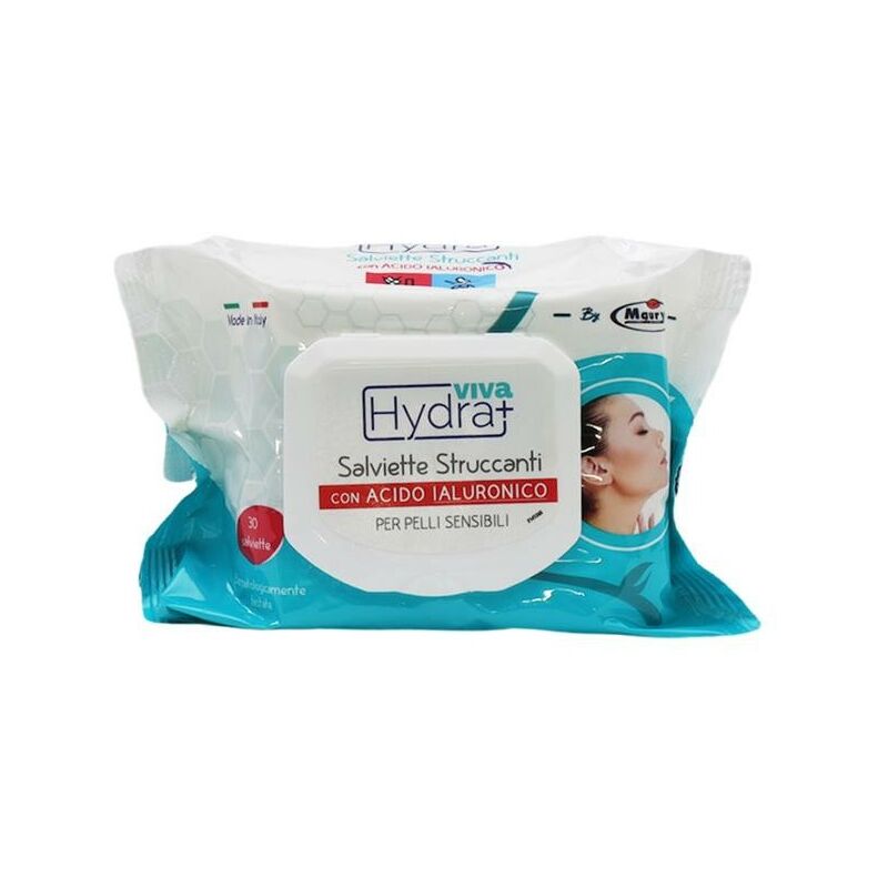 Hydra Viva salviette struccanti arricchite con acido jaluronico in confezione da 30 pezzi. L' acido Jaluronico è in grado di vincolare le molecole d' acqua in grandi quantità nella pelle assicurando una profonda idratazione e garantendo un effetto rimpolpante. In confezione da 30 pezzi. sono comode per essere utilizzate a casa. in viaggio e portate sempre con sè. Hydra Viva Salviette Struccanti Arricchite con Acido Jaluronico Indicate per struccare e idratare la pelle In confezione da 30 pezzi Delicate sulla pelle