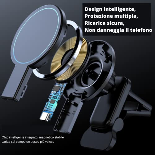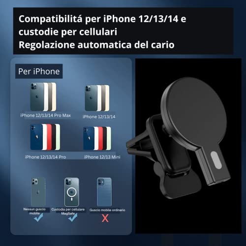 Samaray Caricabatterie Wireless Magnetico per Auto Ricarica Veloce Supporto per la Bocchetta dell'Aria Compatibile con iPhone 14/14Plus/14 Pro/14Pro Max e iPhone serie 13/12 adattatore QC 3.0 incluso!