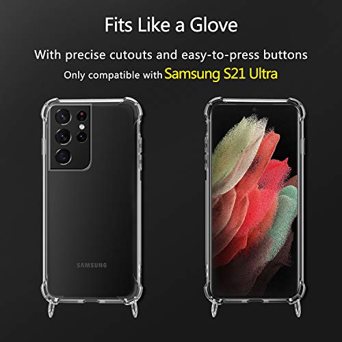【Durevole Material】 Custodia Samsung Galaxy S21 Ultra 5G, custodia antiurto morbida ma stabile, la custodia in TPU è durevole e protegge il tuo cellulare da sporco, graffi e polvere quotidianamente. Tenendo il telefono appeso a una corda si evita di farlo cadere