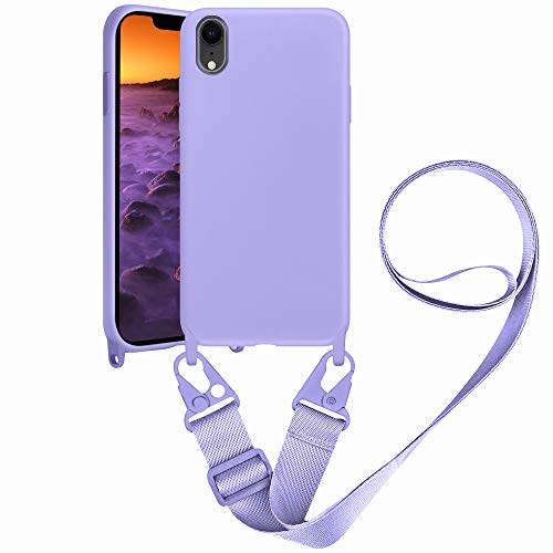 SAMCASE Cover con Cordino per iPhone XR, Custodia a Tracolla in Viola Silicone Liquido in Gomma Gel Necklace Regolabile Staccabile Shock Absorption Antiscivolo Protettiva Case