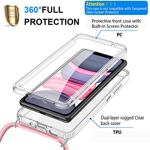 SAMCASE Cover con Cordino per iPhone 11 PRO, Necklace Custodia a Tracolla Transparent 360 Gradi Full Body, Ultra Sottile in Silicone TPU Indietro e Pet Anteriore, Regolabile Protettiva Case, Oro Rosa