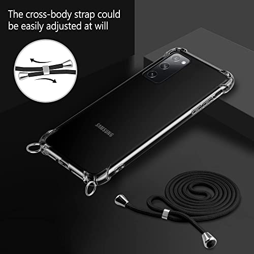 SAMCASE Cover con Cordino per Samsung Galaxy S20 Fe, Custodia a Tracolla Trasparente Morbido Silicone Necklace Regolabile Staccabile Shock Absorption Antiscivolo Protettiva Case in Nero