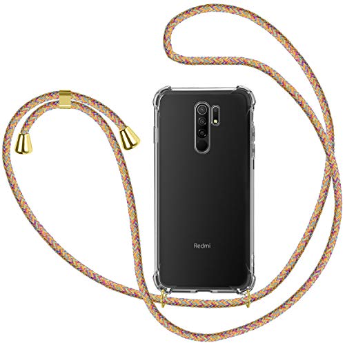 SAMCASE Cover con Cordino per Xiaomi Redmi 9, Custodia a Tracolla Trasparente Morbido Silicone Necklace Regolabile Staccabile Shock Absorption Antiscivolo Protettiva Case in Arcobaleno