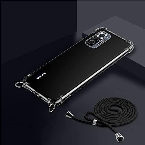 SAMCASE Cover con Cordino per Xiaomi Redmi Note 10 PRO, Custodia a Trasparente Morbido Silicone Necklace Regolabile Staccabile Shock Absorption Antiscivolo Protettiva Case in Nero