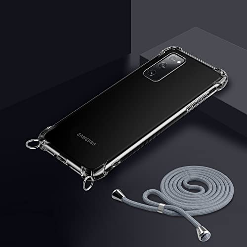 SAMCASE - Custodia per Samsung Galaxy S20 FE, con cordoncino, in silicone trasparente, con cordino da appendere, colore: Grigio