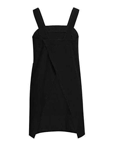 SAMGU Vestito da Grembiule Casual Tinta Unita Vestito Lungo da Donna con Grembiule Quadrato Incrociato in Lino Nero XXL