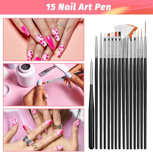 【Set completo di pennelli per nail art】 Il nostro set di pennelli per unghie è realizzato in acrilico e fibra di alta qualità. Include 15 pezzi di pennelli di diverse dimensioni in modo da avere il pennello giusto a portata di mano per ogni situazione. Pennello per nail art con fine, Punta a pennello leggera e completa per decorazioni e pitture varie sull'unghia.