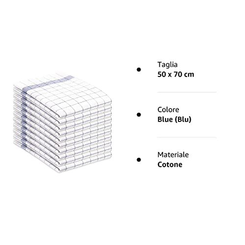 SAMMARA x 10 Strofinacci Cucina, Canovacci da Cucina Molto Assorbente e Facilmente Lavabile, Asciugapiatti da Cucina Taglia 70 x 50 cm, Strofinacci Cucina Spunga 100% Cotone, Colore Blu