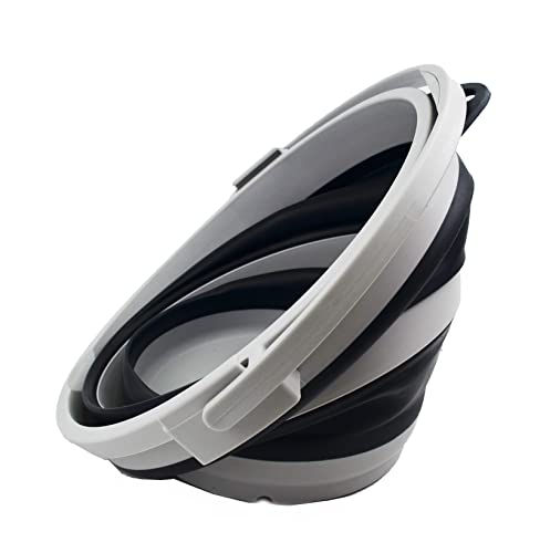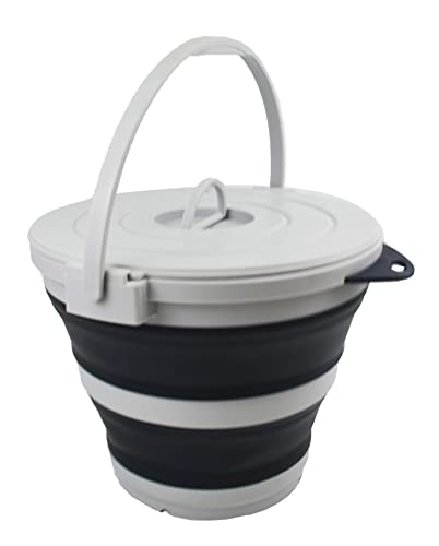 SAMMART Secchio da pesca pieghevole da 10 litri con coperchio di bloccaggio, vasca rotonda pieghevole, secchio d'acqua in plastica portatile, salva-spazio per esterni (grigio/grigio ardesia)