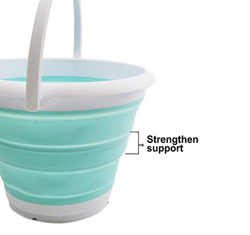 SAMMART Secchio da pesca pieghevole pieghevole da 10 l, vasca rotonda pieghevole, secchio d'acqua in plastica portatile, salva-spazio per esterni - organizer per tronchi (1, bianco/verde lago)