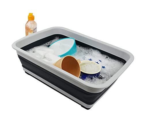 SAMMART - Vasca pieghevole da 8 l, vasca pieghevole per piatti, lavabo portatile, vasca salvaspazio in plastica (grigio/grigio ardesia, 1)