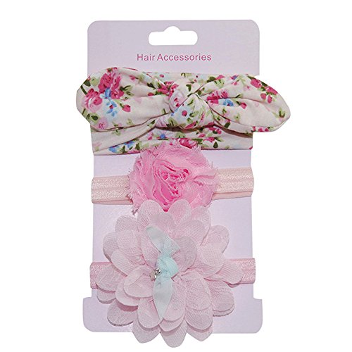 SamMoSon Cappello Da Bambini Bimbo bambino bambine Neonato Infantile Bambino Ragazzo Ragazza Estate Semplice Fiori Orecchie Di Coniglio Tie Papillon Fascia Per Capelli A Tre Pezzi Set (B)