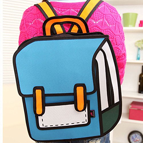 Sammua - Zaino effetto disegno 2D, stile cartone animato/fumetto blu blue