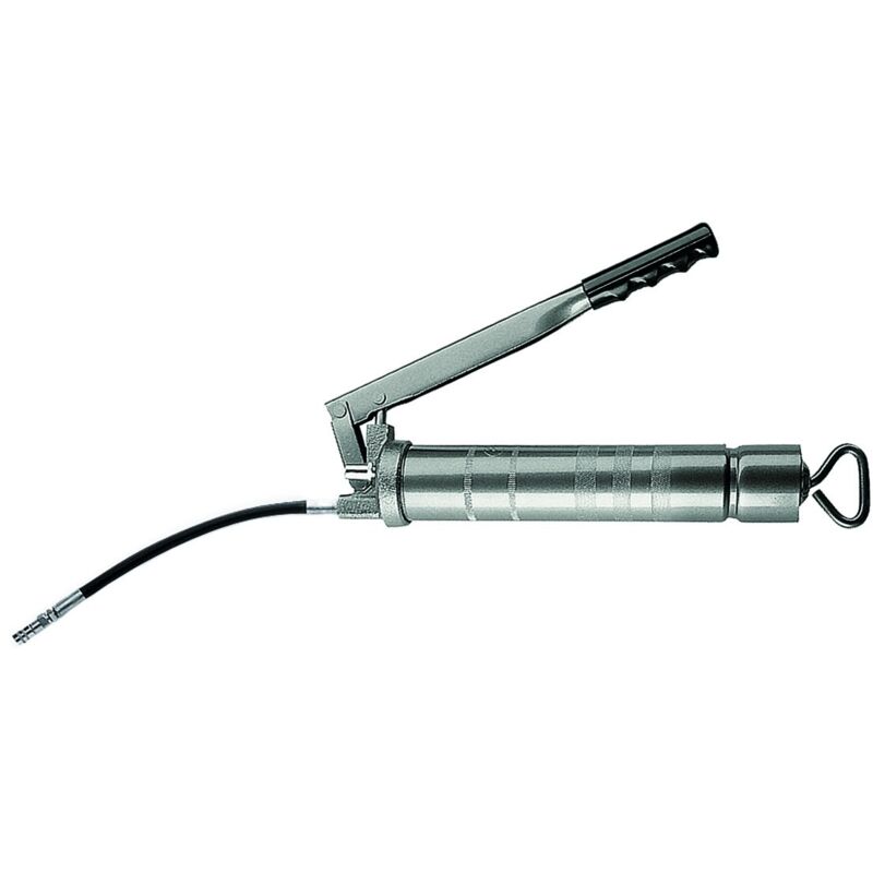 Pompe per grasso manuali a leva per uso professionale. Testata della pompa in ghisa, meccanismo della pompa con pistone in acciaio rettificato per alta pressione, eliminando il rischio Ricircolo del grasso (lubrificazione immaginata). Con valvola sfogo aria. Leva di azionamento con impugnatura antiscivolo. Pistoncino spingigrasso con asta retrattile all'interno del serbatoio. Adatto per riempimento tramite aspirazione, con cartuccia, sfuso o dispenser. ;