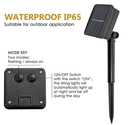 Lungo tempo di lavoro - con una piena ricarica di 6 a 8 ore, la ghirlanda luminosa apporterà illuminazione per 8 a 10 ore. Elemento di manganese sono aggiunti alle batterie di luce solare per assicurarsi che la batteria solare può essere caricata in inverno.