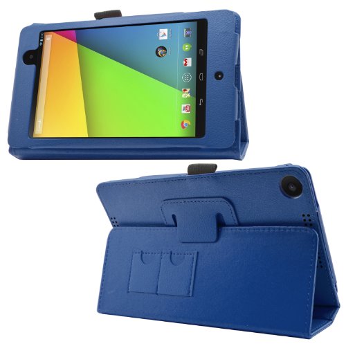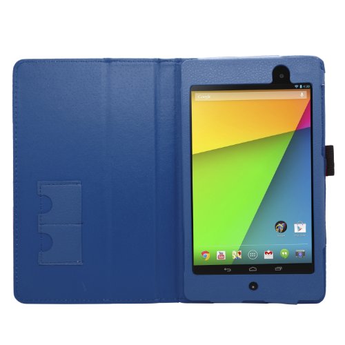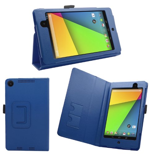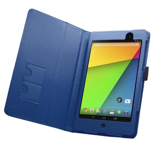 SAMRICK - Custodia a libro in pelle specialmente ideata per Asus Google Nexus 7 II, con supporto, proteggi schermo, panno in microfibra e pennino capacitivo Blu blu Nexus 7 II (2nd Gen)