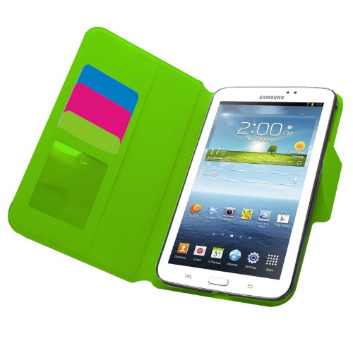 Samrick P3200/P3210 - Custodia executive a portafoglio in pelle a due colori, con: supporto per visione, tasche interne per carte di credito o biglietti da visita, porta foto o immagine, appositamente ideata per Samsung Galaxy Tab 3 da 7'' Multicolore Verde/Blu P3200 & P3210 Galaxy Tab 3 (7.0)