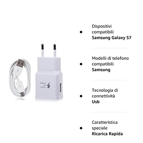Samsung TA20 - Caricatore per Samsung Galaxy S7, ricarica rapida, AFC, 2A, con cavo microUSB da 1,5 m, colore Bianco