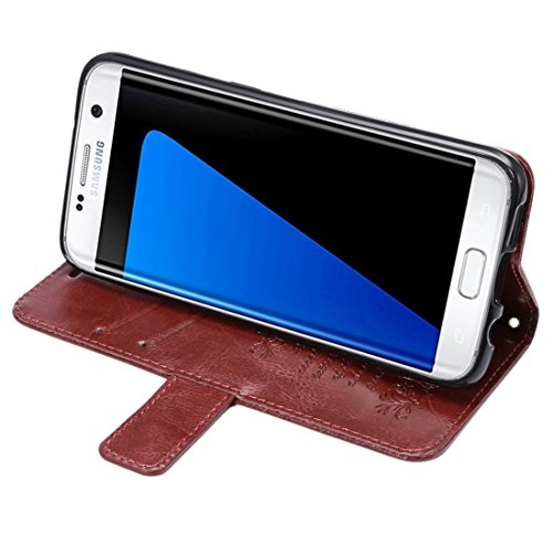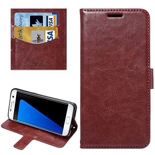 Samsung Case Cover Per Samsung Galaxy S7 Bordo / G935 raffinata pelle di pecora Texture di caso di vibrazione del cuoio orizzontale con il supporto e slot per schede ( Color: Brown )