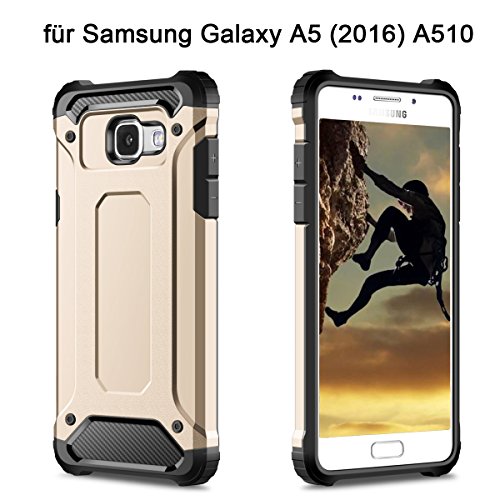 Samsung A5 2016 Cover,Oro [Protezione Hybrid Dual-Layer] Shock-Absorption Armor Hybrid DualSoft TPU Bumper PC Rigida Cover Custodia per Samsung Galaxy A5 (2016) A510F