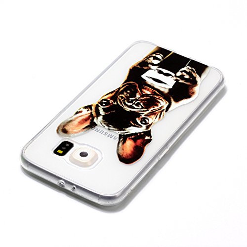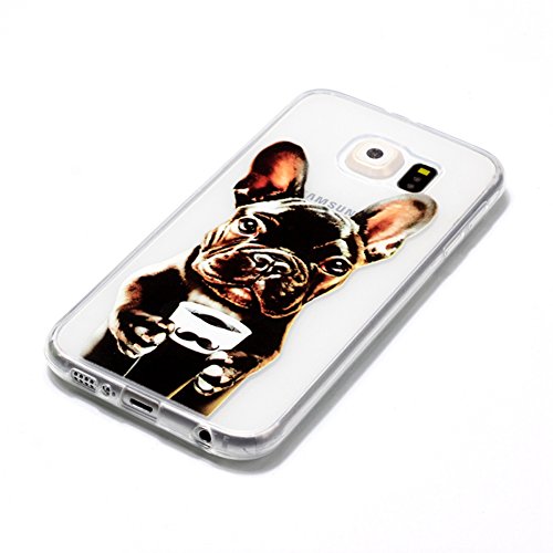 Samsung S6 Case Cover, Sunroyal [Antigraffio] [Anti-Scratch] TPU Gel Silicone Creative logo Custodia Trasparente Cristallo Chiaro Bumper Soft Morbido Ultra Slim Skin Protezione e 3.3ft Cavo USB Micro USB Carica Rapida Nylon Antigroviglio Cavo del caricator per Samsung Galaxy S6 G9200 SM-G920 S6 Duos - Bulldog Francese