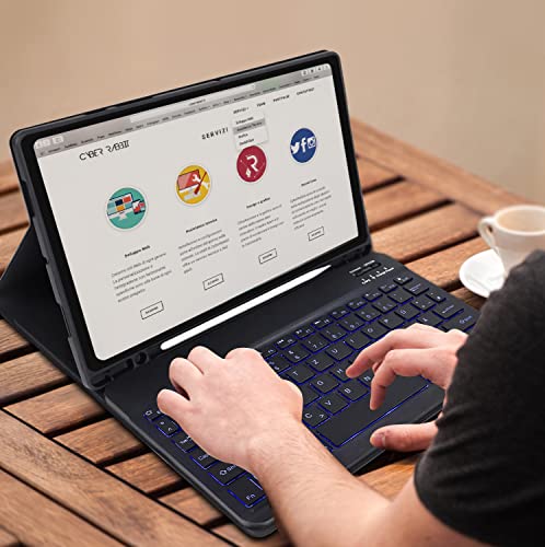Tastiera Bluetooth rimovibile con retroilluminazione a 7 colori: 7 colori di retroilluminazione e 3 livelli di luminosità consentono una digitazione fluida al buio, è possibile regolarla a piacimento. Questa tastiera rimovibile può essere fissata magneticamente alla custodia del Samsung Tab A8 e si può rimuovere quando non ne avete bisogno. Il Bluetooth è facile da collegare.